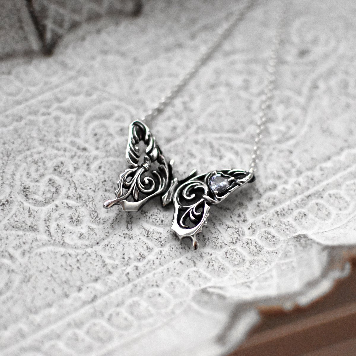 - > アゲハ 蝶 ハートストーン 両吊り シルバー 925 ネックレス【Ageha|アゲハ】