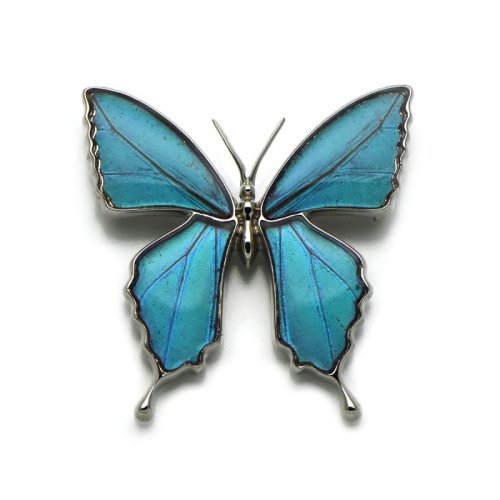 羽根のブルーのグラデーションが美しい蝶のブローチ。