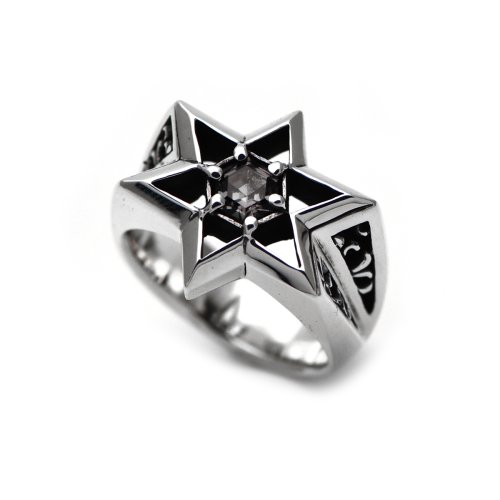 七芒星(seven pointed star)をモチーフにデザインされたシルバーコンチョをヘアゴムに製作。