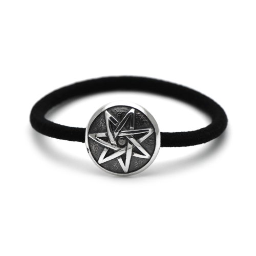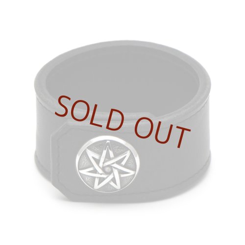 七芒星(seven pointed star)をモチーフにデザインされたコンチョをワンポイントに合わせたレザーブレスレット。