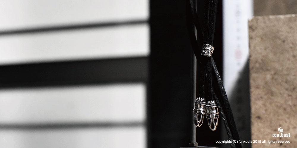 エンドパーツは高級感のあるデザインで黒いマットな質感の革紐を引き締めます。