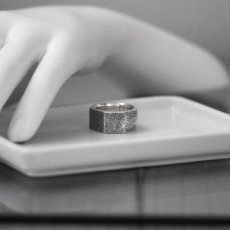 表面全体にテクスチャーと燻し加工が施されたマルチフェイスのシルバーリング。