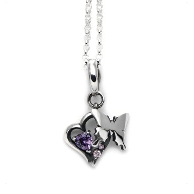 アゲハ蝶とハートデザインの可愛いシルバーペンダント。