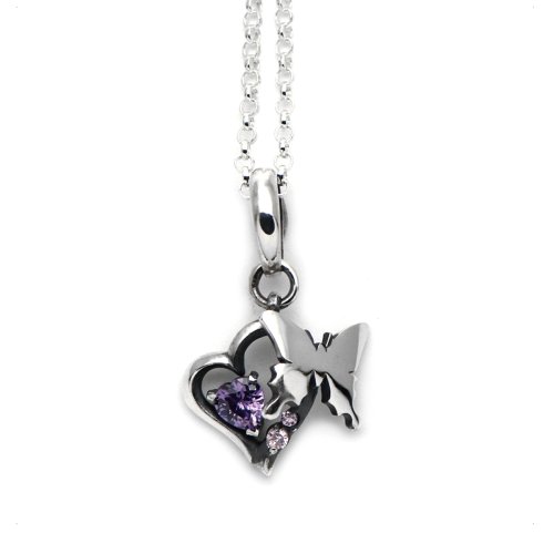 アゲハ蝶とハートの可愛いシルバーピアス。