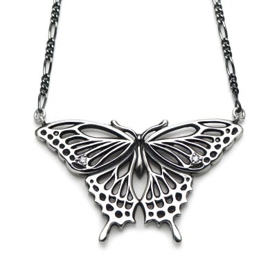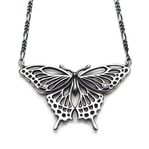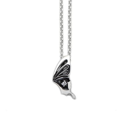 アゲハ蝶のハーフシルエットが彫刻されたシルバーペンダント。