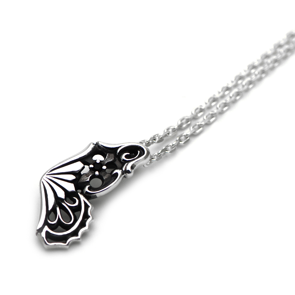 ペアペンダントの羽根を合わせるとアゲハ蝶のシルエットが綺麗に現れます。