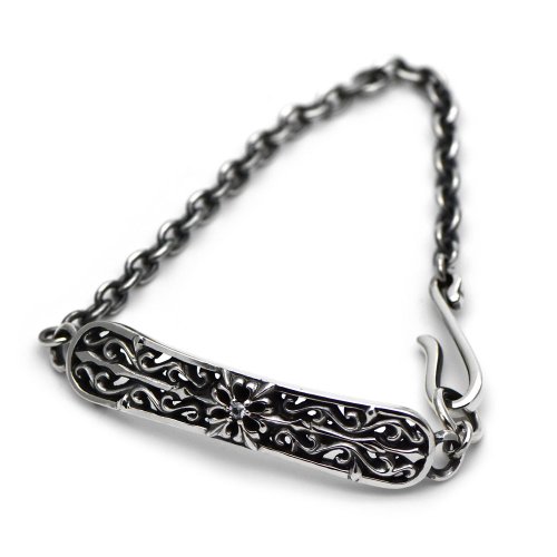 逆十字とブランドロゴが刻印された盾の二つのシルバーチャームがアクセントとなっています。
