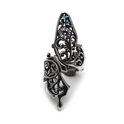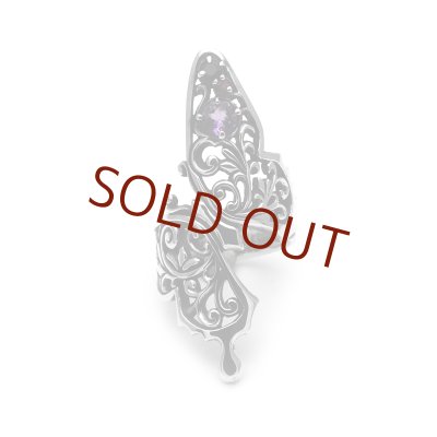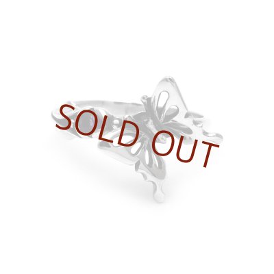 指元を大胆に取り巻くアゲハ蝶のシルバーリング。