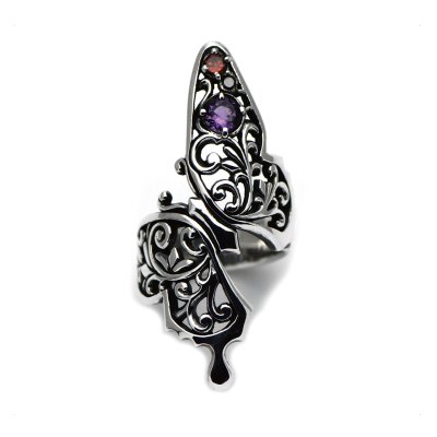 - > アゲハ蝶 アラベスク模様 シルバーリング 15号 ガーネット/ブラックジCZ/クリアCZ【Ageha|アゲハ】【SALE】