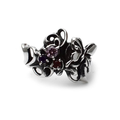 - > アゲハ 蝶 植物デザイン シルバーリング 3号 クリアCZ/ガーネット/アメシスト【Ageha|アゲハ】【SALE】