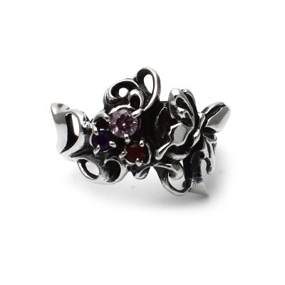 アゲハ 蝶 植物デザイン シルバーリング 9号 ペリドット/アメシスト/ピンクCZ【Ageha|アゲハ】【SALE】 [SFAR-068-3]