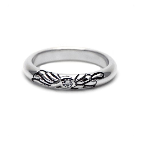 アクセントとして羽根に寄り添うように小さな宝石を合わせました。