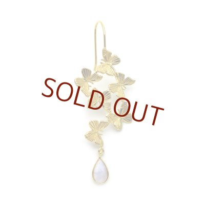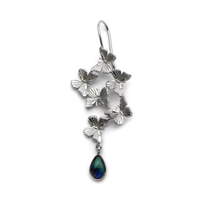6匹の小さな蝶と揺れる雫を合わせたシルバーピアス。