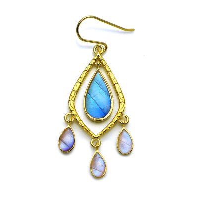 小さな雫に合わせた蝶の翅は見る角度や光の具合によって輝きが変化し、いろんな表情を楽しませてくれます。