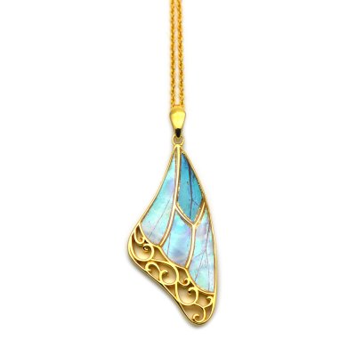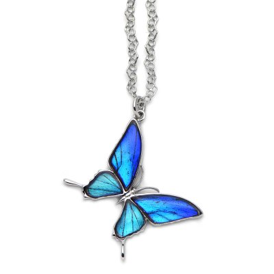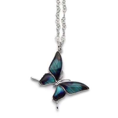 2種類の蝶の羽を使用した高級感のあるシルバーペンダント。