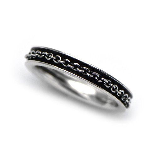鏡面と燻し仕上げでアラベスク模様をデザインしたシルバーネクタイリング。