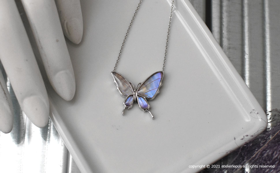 - > スルコウスキーモルフォ 蝶の翅 両吊り シルバー925 ペンダント ネックレス【Psyche|プシュケ】