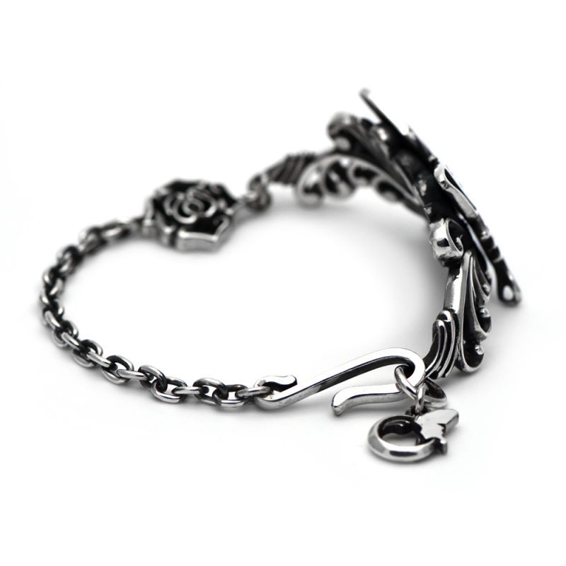 アゲハ蝶と唐草をデザインした大ぶりなシルバーブレスレット。