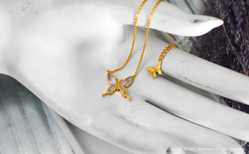 ・蝶の羽が天然の物であり、商品の1点1点がデザイナーの手作りによる為、同じ品番の商品でも多少の違いがございます。