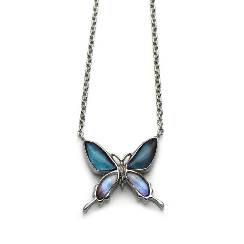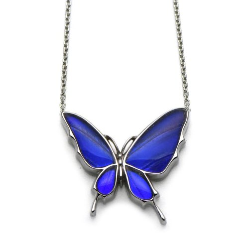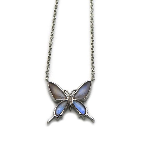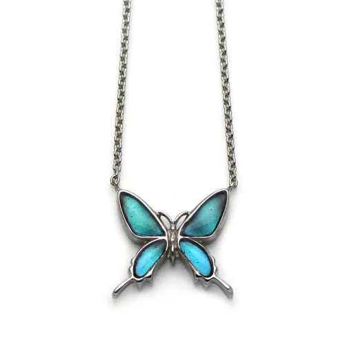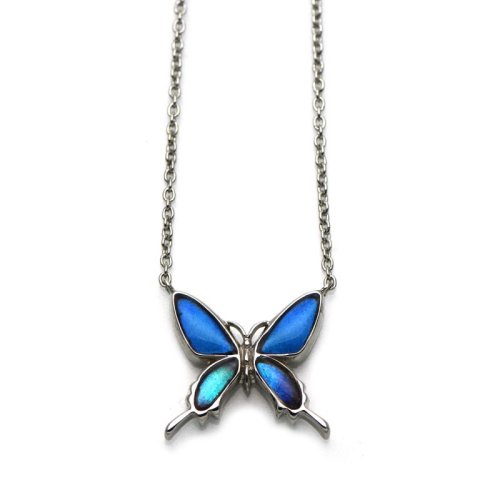 2種のモルフォ蝶のブルーグラデーションが印象的で美しいシルバーペンダント。