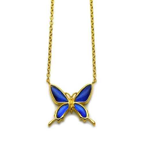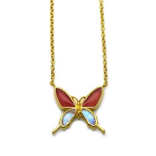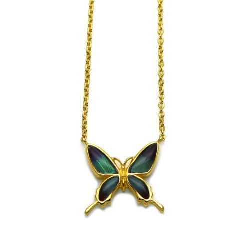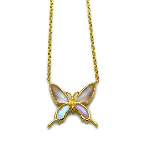 - > カキカモルフォ/ゼフィリティスモルフォ 蝶の翅 両吊りタイプ シルバー925 ペンダントネックレス (ゴールド)【Psyche|プシュケ】