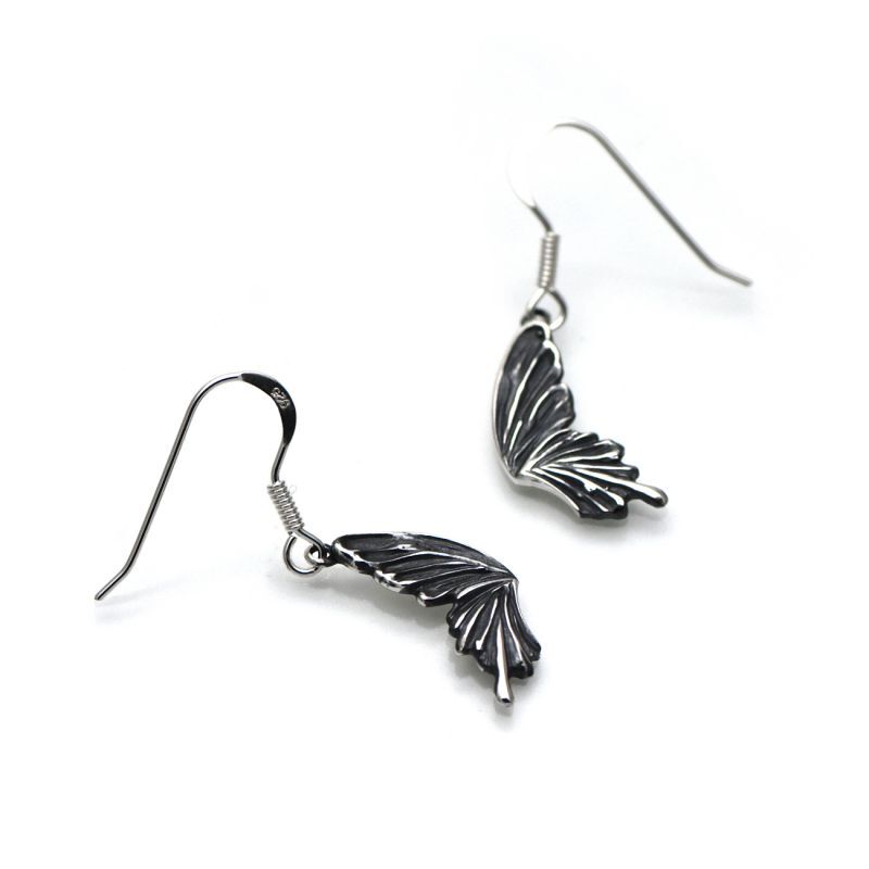 アゲハ蝶の片羽根デザインのシルバーピアス。