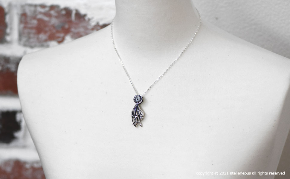 アゲハ蝶の上羽根と下羽根を組み合わせたシルバーペンダント。