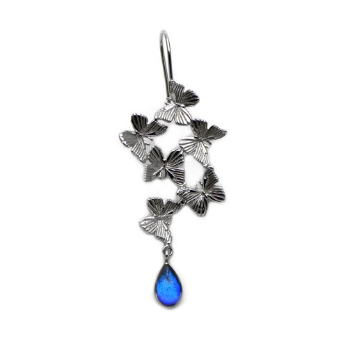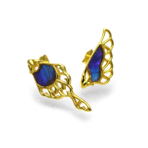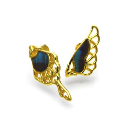 上翅と下翅をモチーフとしたブルーカラーのグラデーションが美しいシルバーピアス。