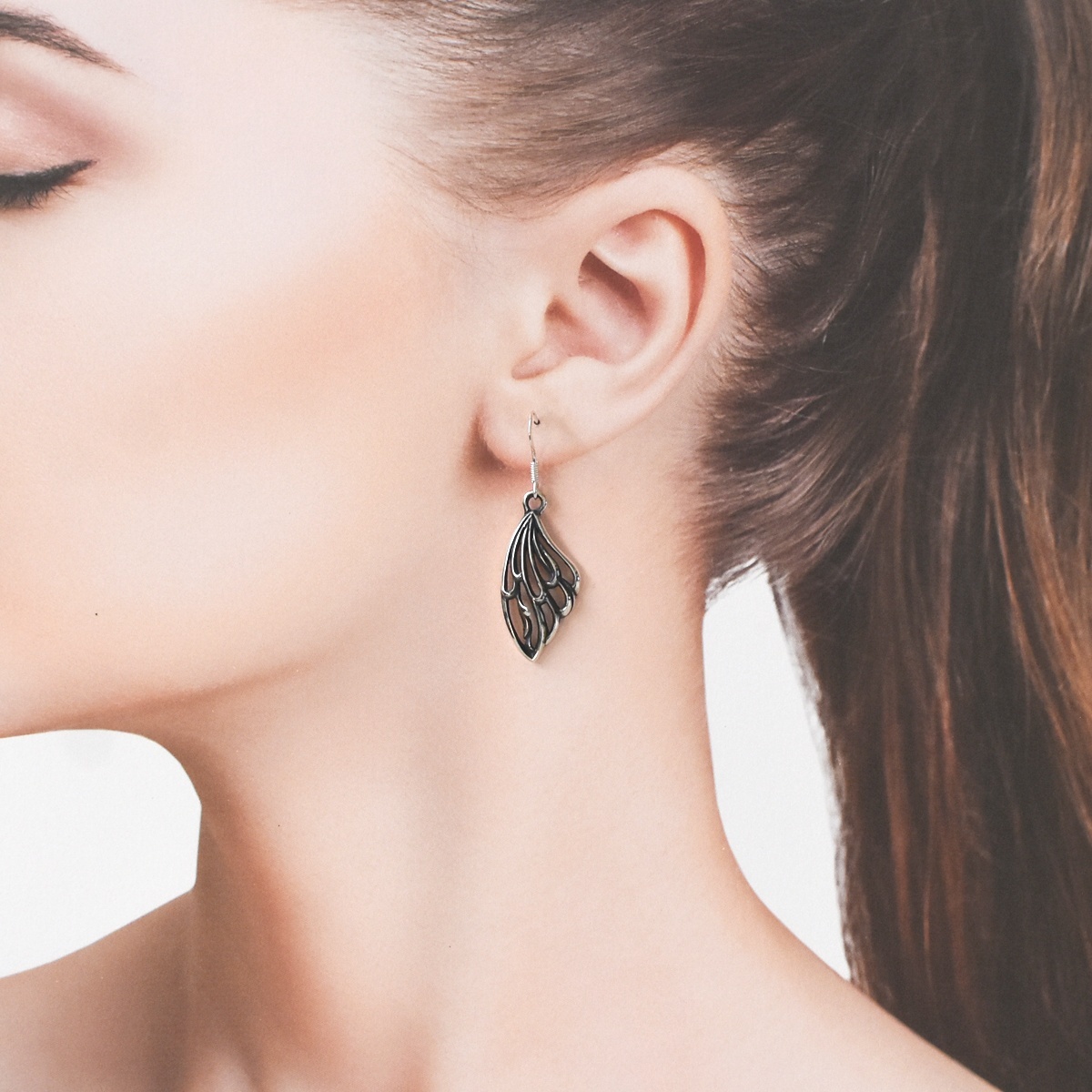 アゲハ蝶の上羽根デザインのシルバーピアス。