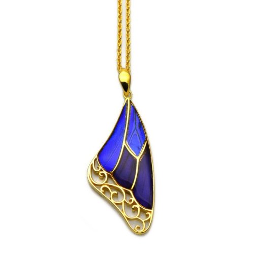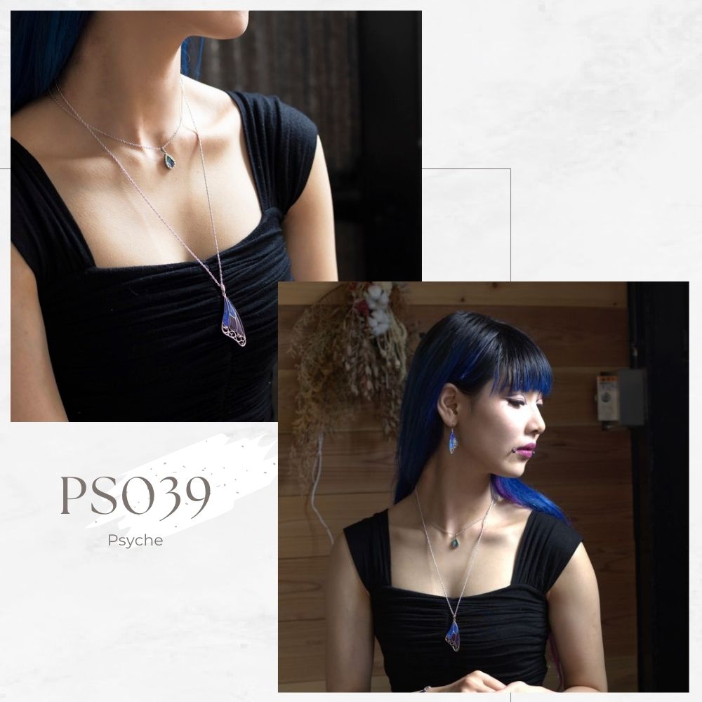 - > カキカモルフォ/ムラサキツバメ 上羽デザイン 蝶の翅 シルバー925 ペンダント ネックレス 【Psyche|プシュケ】