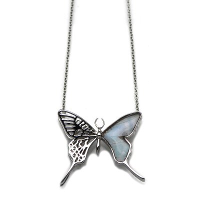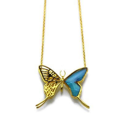 - > タミラスムラサキシジミ 蝶の翅 二枚羽デザイン シルバー925 ペンダント ネックレス (ゴールド)【Psyche|プシュケ】