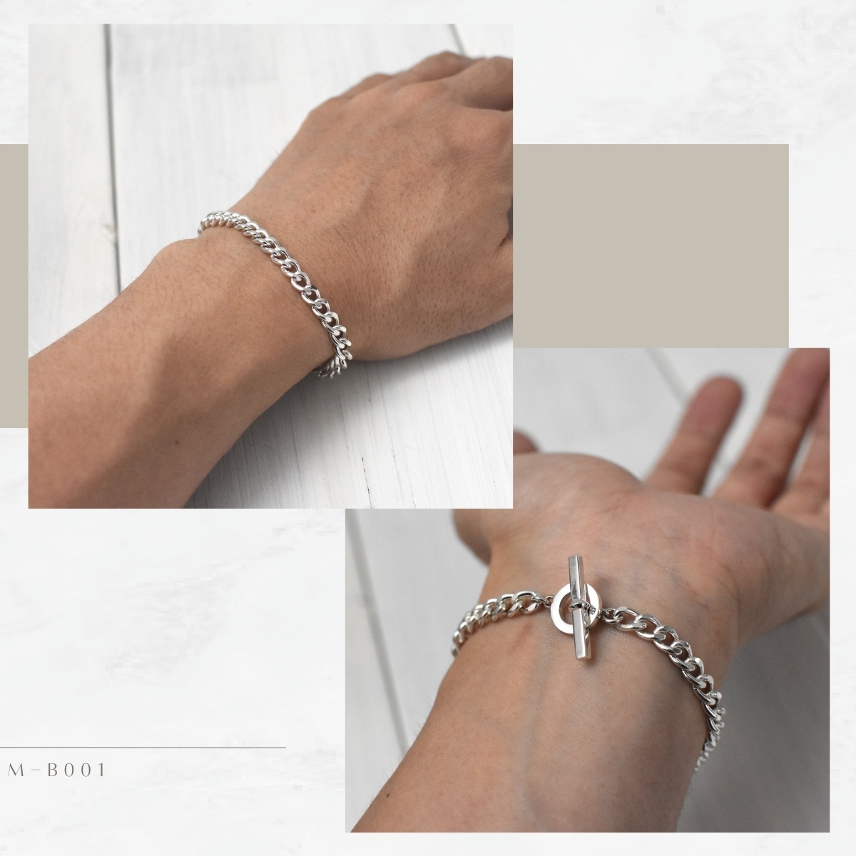こちらは燻し加工を施さず、マルカン&Tバーとチェーンの一体感をお楽しみ頂ける美しい作品です。