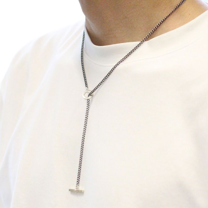 チェーンはOXIDIZED加工(燻し加工)を施し、マルカン&Tバーのシルバーカラーとのコンビネーションをお楽しみ頂けます。