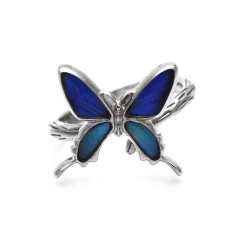 ドクソコパチェルビナ蝶の深い輝きのグリーンのグラデーションが美しいシルバーリング。