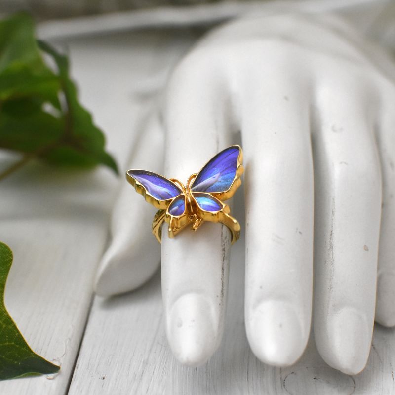 モルフォ蝶のブルーグラデーションが印象的で美しいシルバーリング。