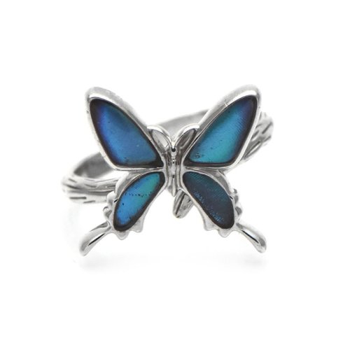 モルフォ蝶のブルーグラデーションが印象的で美しいシルバーリング。