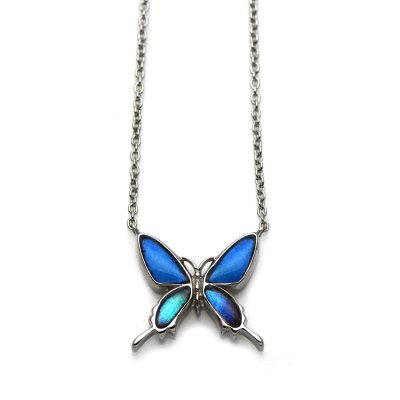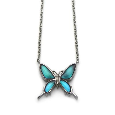 ドクソコパチェルビナ蝶の深い輝きのグリーンのグラデーションが美しいシルバーペンダント。