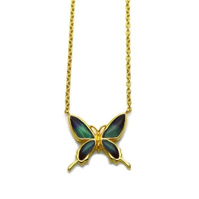 ドクソコパチェルビナ蝶の深い輝きのグリーンのグラデーションが美しいペンダント。
