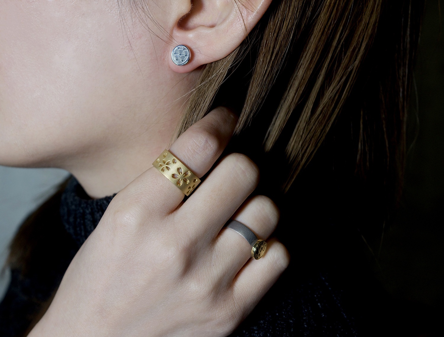 伝統文様を細部まで丁寧に仕上げた耳飾り。