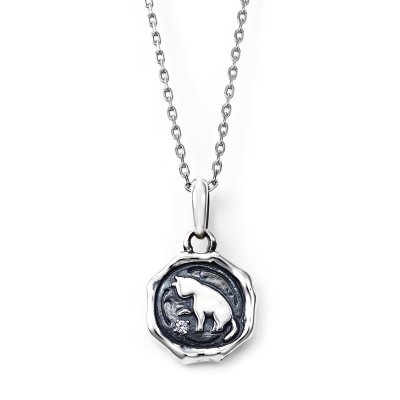 猫 シーリングスタンプ シルバー925 ペンダント ネックレス ペア レディース [誕生石]【FUNKOUTS×White clover】【コラボアイテム】 [WAW-025P-W]
