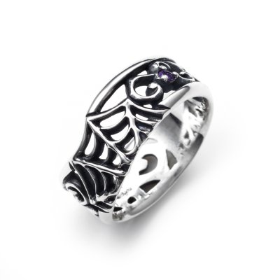 アゲハ蝶と蝶を捕らえる蜘蛛の巣をイメージしたシルバーペアペンダント。