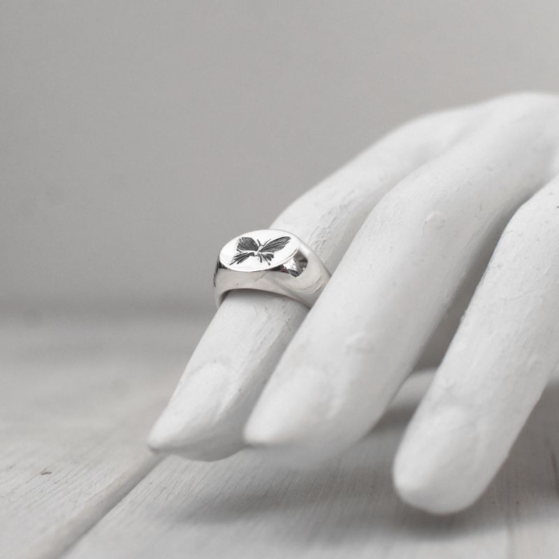 アゲハ蝶デザインのシルバーシグネットリング。