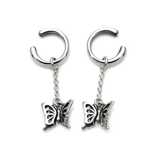 アゲハ蝶デザインのシンプルなシルバーイヤーカフス。