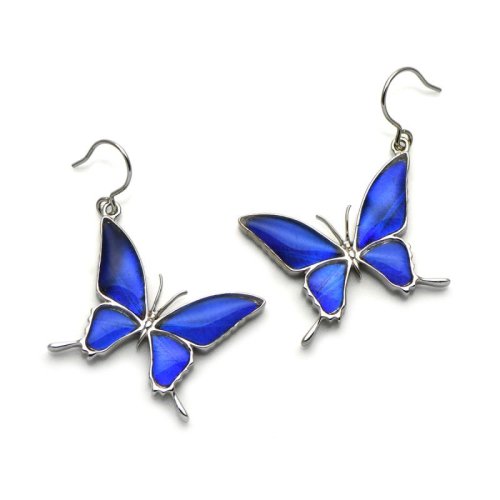 ゼフィリティスモルフォ蝶のエレガントなグラデーションが美しいシルバーピアス。