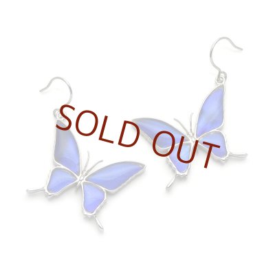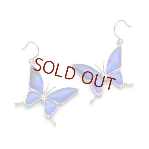 パールカラーの羽が上品なスルコウスキーモルフォ蝶のシルバーピアス。