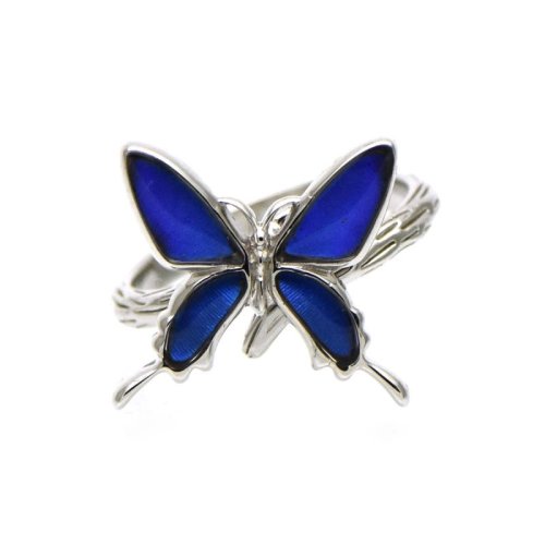 ゼフィリティスモルフォ蝶のエレガントなグラデーションが美しい蝶のシルバーリング。