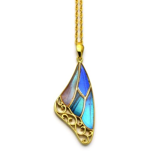 モルフォ蝶のブルーグラデーションが印象的で美しいシルバーペンダント。