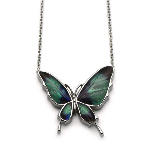 パールカラーの羽が上品なスルコウスキーモルフォ蝶のシルバーペンダント。