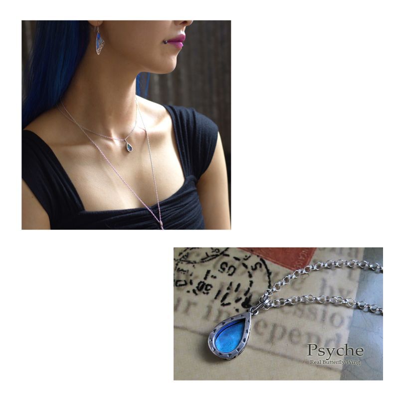 - > スルコウスキーモルフォ 蝶の翅 雫 ティアドロップ シルバー925 ペンダント ネックレス【Psyche|プシュケ】