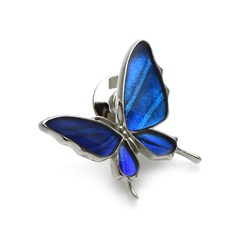 モルフォのブルーグラデーションが印象的で美しい蝶のラペルピン。